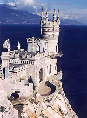 SWALLOW'S NEST, 1911-1912. Built in Haspra above Aurora's Cliff according to the designs of the architect A. Sherwood. Designed as a medieval castle. Beside it are the ruins of an ancient Roman fortress of the lst-3rd c. On the site of the Ai-Todorsky lighthouse is a collection of light-house bells.